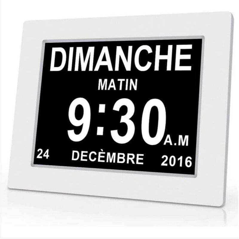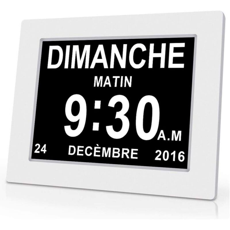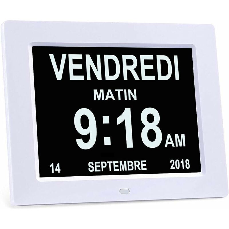 Horloge Calendrier - Auto Dimming pour Les Personnes Âgées / Alzheimer et les enfants -Blanc
