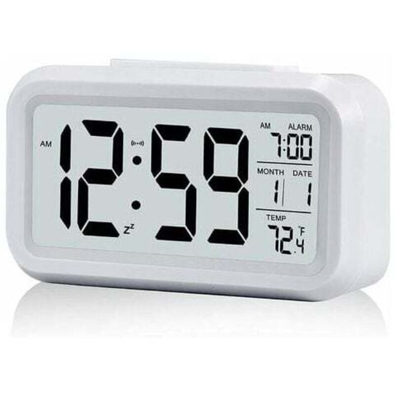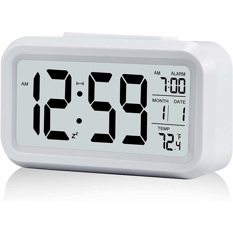 Memkey - Réveil Digital Réveil Matin, Horloge Numérique Réveil à Pile Silencieux pour Enfants Adultes Grand écran led Température Calendrier(Blanc)