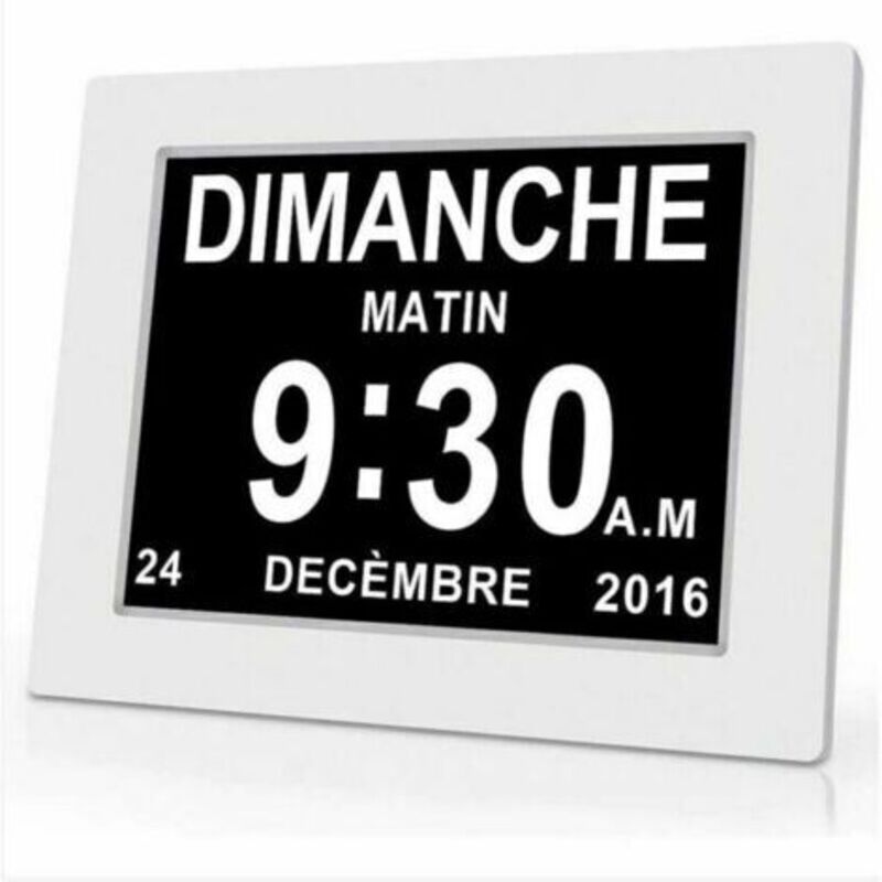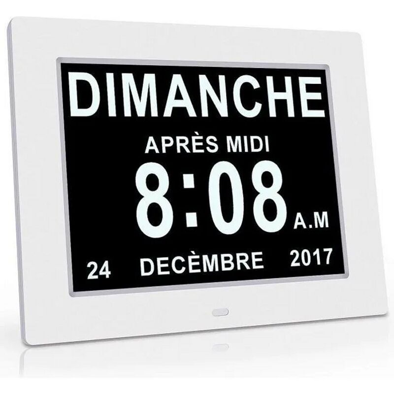 7' Pouce led Horloge Numérique Calendrier avec Date Jour Et Heure Horloge Non-Abrégée Auto Dimming 8 Langues hd Display Rappel pour Alzheimer Les