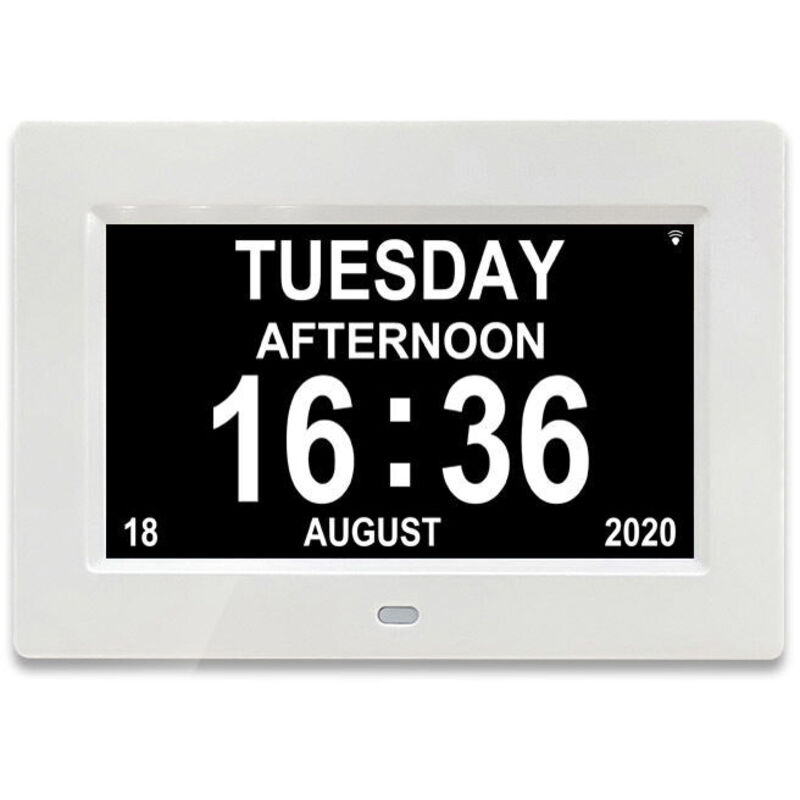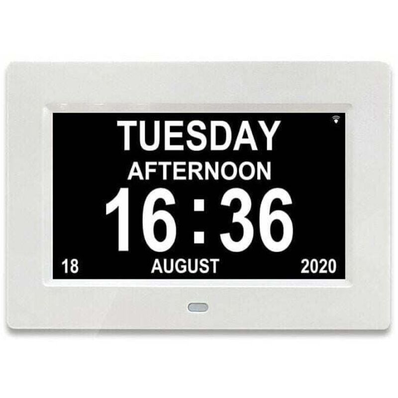 Jalleria - 8' lcd Horloge Numérique Calendrier avec Date, Jour Et Heure Alzheimer C'est pour Les Parents, Grands-Parents Et Enfants-White