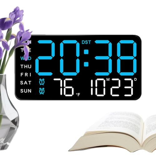 Grande horloge murale numérique multifonctionnelle à DEL avec date – Horloge murale numérique de bureau | Pour chambre à coucher, salon, bureau, dortoir, camping-car, garage, terrasse, piscine, salle