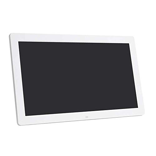 Spacmirrors Cadre Photo numérique électronique 18,5 Pouces, écran HD IPS 1366 x 768, Cadre Photo/Musique/vidéo, Horloge et Calendrier avec télécommande, Prise en Charge USB/Carte SD (Blanc 18,5