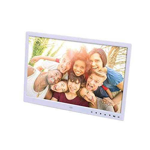 Cadre Photo Numérique à écran Large HD 14 Pouces avec Horloge électronique et Fonction Calendrier pour Plusieurs Appareils Multimédias, AC100‑240V (Blanc)