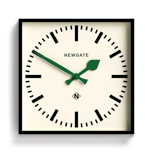 NEWGATE® Number Five Horloge Murale | Horloge de Gare Moderne carrée d’Inspiration rétro | 40cm | Noir avec Aiguilles Vertes | Style du Milieu du siècle pour Cuisine, Salon ou Bureau