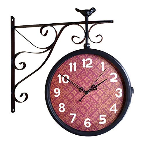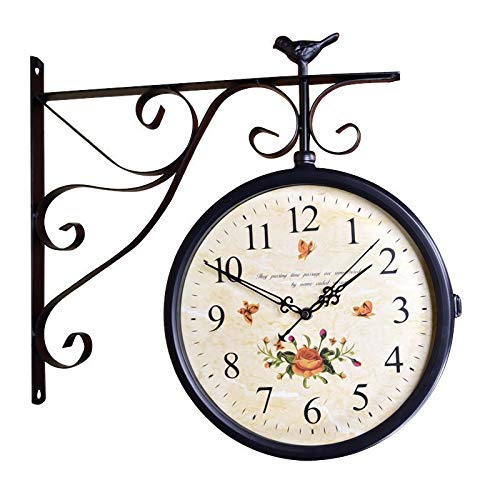Uposao Horloge de Gare Double Face - Horloge Murale rétro Vintage avec Support pour intérieur et extérieur - pour Maison, Jardin, Cuisine, Cour, Salon