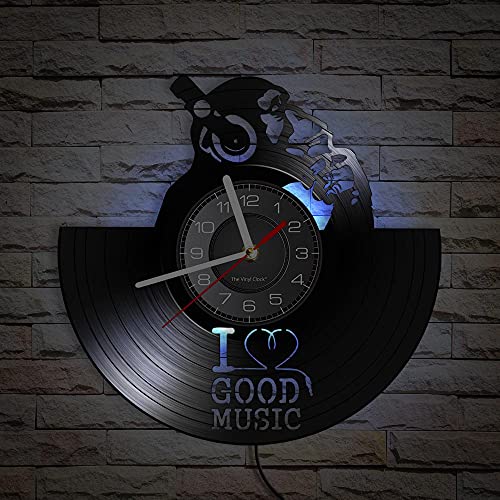 Timethink Gorilla Listening to Music Horloge murale lumineuse à LED en forme de disque vinyle avec singe de pensée changeant de couleur avec casque, disque gramophone (avec lumière)