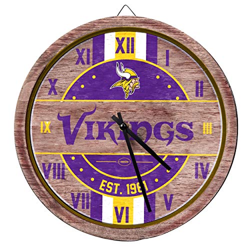 Foco NFL Minnesota Vikings Team Logo en Bois Baril Horloge Murale Logo en Bois Couleur équipe Taille Unique