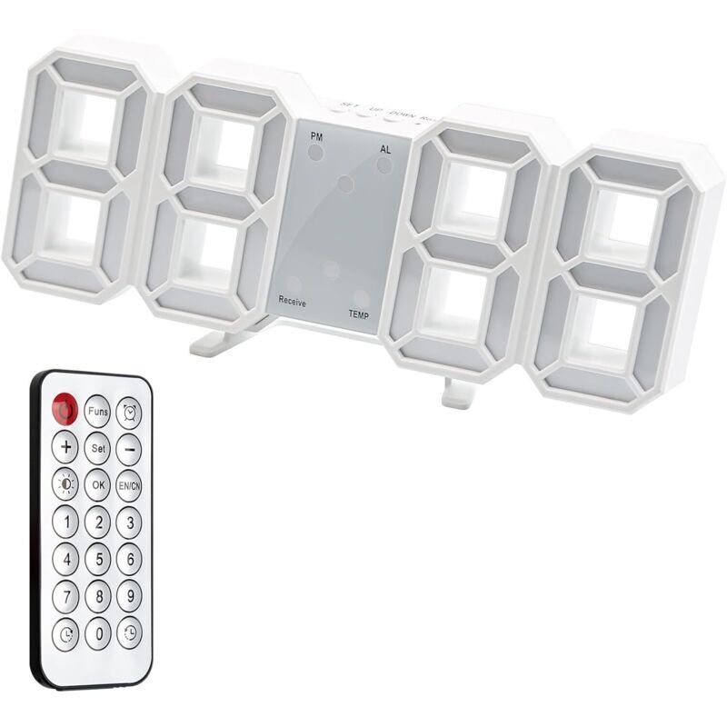 Eosnow Horloge murale LED 3D minimaliste, cadre blanc, minuterie d'alarme numérique avec température, pour la maison et le salon