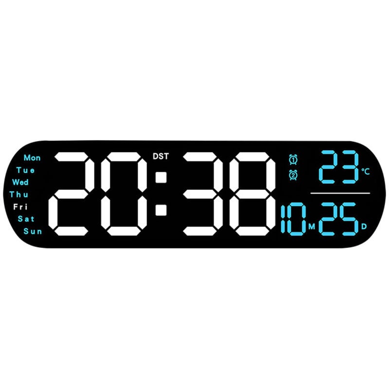 Digitale Murale Clock - L' Horloge Numérique Murale LED Géante avec Température et Affichage Lumineux en Bleu-Blanc