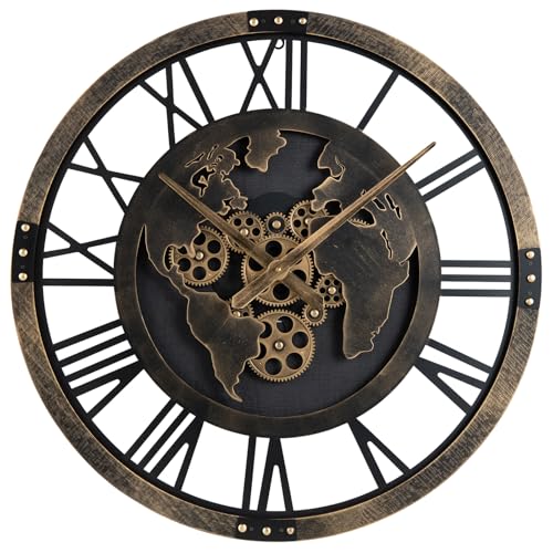 Dekory Carte de Monde Horloge Murale en métal 70 cm, Silencieux sans tic-tac, horloges murales Vintage et Industriel en métal, Pendule Murale, pour Salon Bureau, Chambre, Cuisine, Salle à Manger