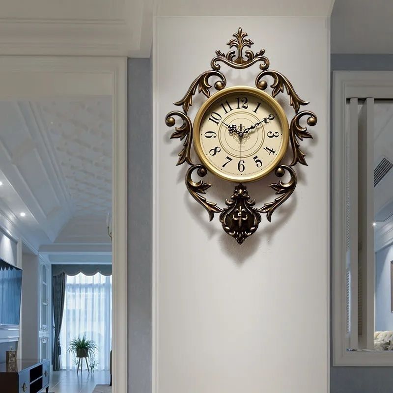 Horloge murale de style rétro européen, horloge murale décorative pour salon et chambre, horloge murale silencieuse, décoration murale d'entrée,