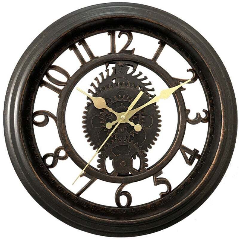Horloge murale vintage 11" - Noir, Horloge murale créative squelette, Horloge murale de salon à lumière ronde, style luxe
