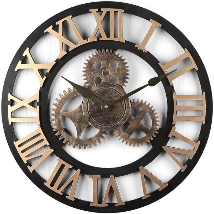50cm Horloge Murale Geante Pendule Industriel en Bois Vintage 3D Silensieuse Horloge de la Maison pour Salon Chambre Bureau -