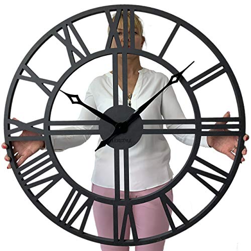FLEXISTYLE EKO design originale Horloge Murale Geante 80 cm LOFT Grande Noir, sans Bruit de tic-tac, industrielle