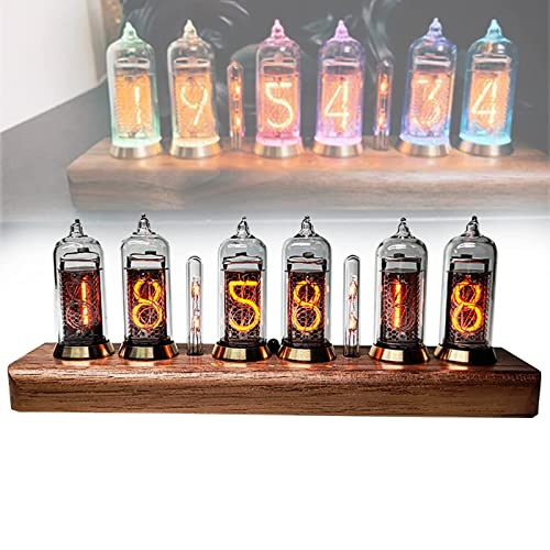 Lonyiabbi Horloge électronique LED à tube lumineux 5 couleurs RVB - Imitation horloge à tube Nixie rétro moderne en bois alimentée par USB - Décoration d’intérieur (pas de montage requis)
