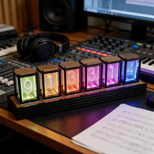 Desiumite Nixie Horloge LED numérique à tube pour bureau avec écran RVB changeant de couleur, alimentation USB, réveil, minuterie, Wi-Fi et contrôle par application mobile