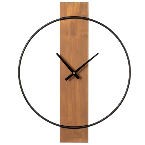 Uniquewise Clockswise Quickway Horloge Murale décorative Moderne avec Cadre en métal Noir sur Planche rectangulaire en Bois, pour Salle à Manger, Salon ou Cuisine, 50,8 cm de diamètre, Marron