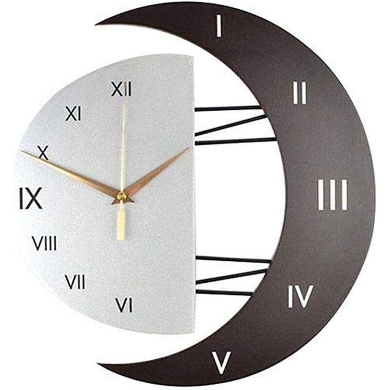 Shining House - Horloge Murale Moderne Design Silencieuse Horloge Cuisine Cadre en Forme de Lune Créative Horloge de Décoration pour la Maison
