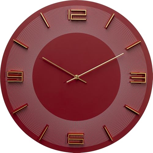 Kare Leonardo Horloge Murale Moderne Rouge/doré Diamètre 49 cm Bordeaux Horloge analogique avec Design linéaire Fonctionnement à Piles pour Salon, Cuisine, Chambre à Coucher et Bureau