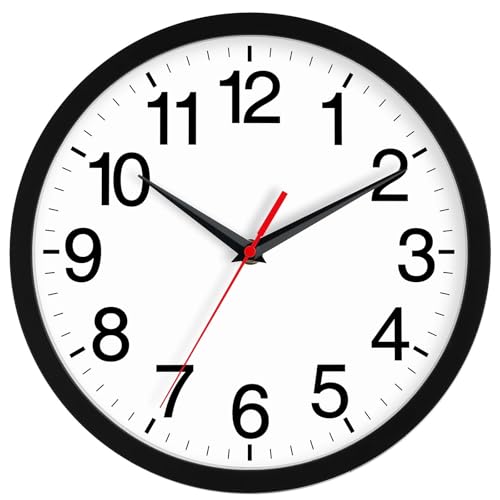 Yoiolclc Horloge Murale silencieuse de 30,5 cm sans tic-tac - Horloge Murale Moderne à Piles pour Salon, Cuisine, Bureau - Noir