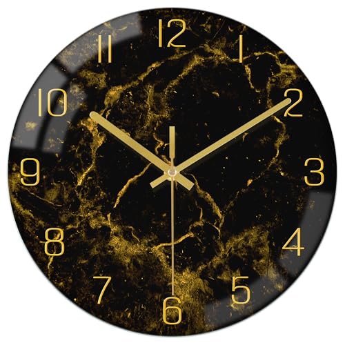 VIKMARI Horloge Murale Moderne Texture de Marbre Noir Or de 30 cm Silencieuse Non Tic-Tac Fonctionnant à Batterie Horloges à Quartz - Décoration Rustique pour Cuisine Chambre Salon et Bureau
