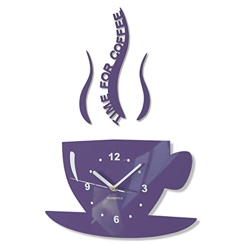 FLEXISTYLE Horloge de Cuisine Moderne La Tasse Temps pour Le café, silencieuse, fabriquée en UE, Acrylique Italien (Milka Violet)