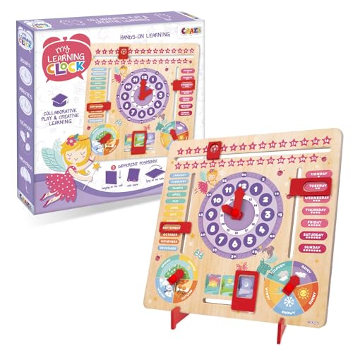 CRAZE My Learning Clock Princesse Langue Anglaise - Horloge éducative pour Enfants en Bois, Calendrier pour Apprendre aux Enfants, Tableau d'apprentissage Saisons