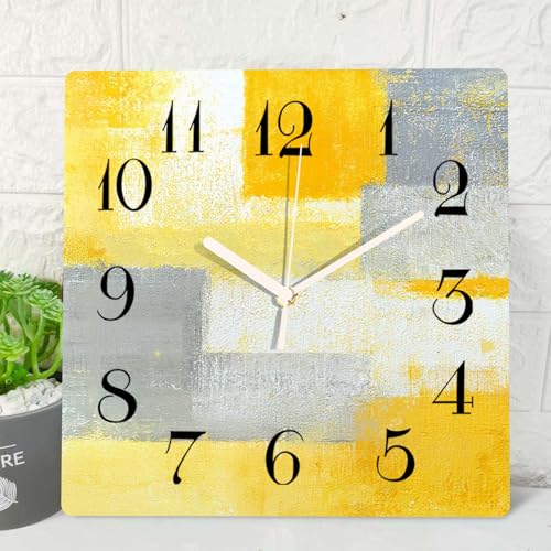 ArtSocket Horloge Murale silencieuse de 30,5 cm, Style Vintage Moderne, Peinture Abstraite Jaune, Gris, Blanc, Fonctionne avec Piles, Affichage analogique
