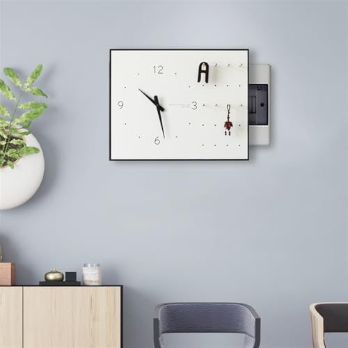 LVYUDS Avec Horloge Cache Tableau Electrique Panneau Perforé Crochets Clé Rangement, Cache Compteur Electrique Mural Caché Bois étanche Anti-Poussière Polyvalent(Right,50 * 30CM_HORIZONTAL)