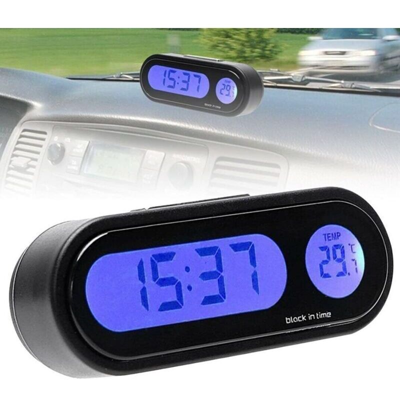 Horloge de Tableau de Bord de Voiture, LCD numérique à l'intérieur de la Voiture, thermomètre avec rétroéclairage pour intérieur et extérieur,