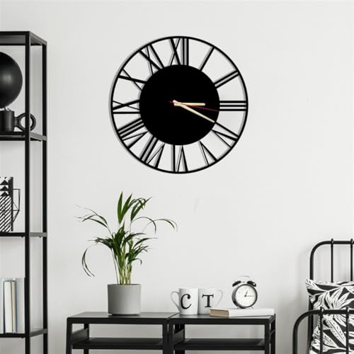 Maxstar Chiffres Romains Modernes Grandes horloges murales Horloge Murale silencieuse en métal Rond sans tic-tac pour Salon, Cuisine, Chambres, horloges murales Vintage de Jardin, décor Noir 47 cm