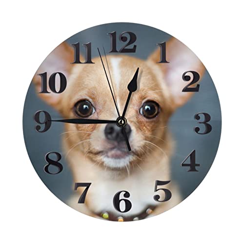 Horloge murale ronde numérique à imprimé chihuahua mignonne, horloges murales rondes pour décor de salon, horloge murale décorative silencieuse sans tic-tac pour la cuisine à domicile (9,84 pouces)