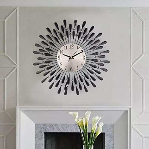 QIANGG Horloges murales décoratives pour Salon métal Silencieux Horloge à Quartz pour Maison Maison Cuisine Chambre Noir/Or,70cm-Black