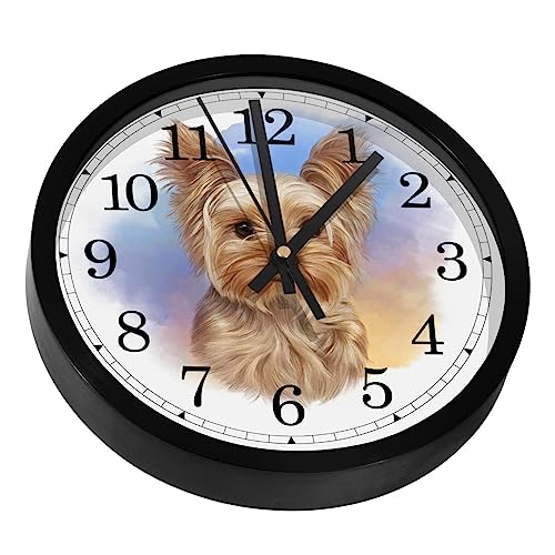 VAPOKF Horloges murales silencieuses à piles Yorkshire Terrier aquarelle pour chambre à coucher, salon, cuisine, bureau, décoration d'intérieur