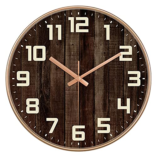 Lrtzizy Horloge Murale Lumineuse, Horloges murales de Cuisine silencieuses en Bois de 12 Pouces Qui ne Font Pas de Tictac pour intérieur/extérieur