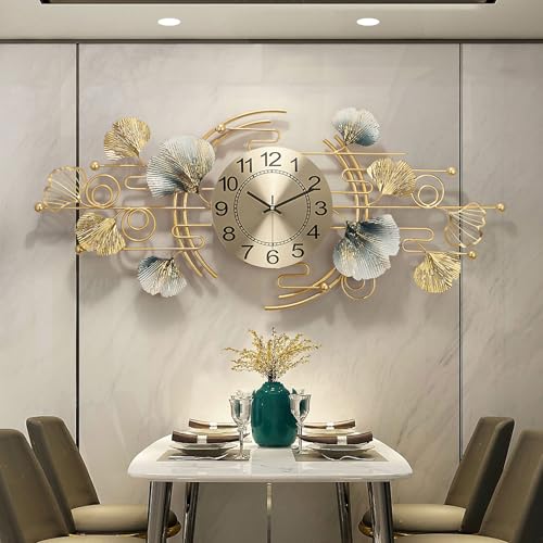 NNYCC Grandes horloges pour Le Salon Mural en métal Art Mural Or Horloge Murale Vintage Moderne Horloges murales Salon Cuisine Bureau Décor Horloges Or