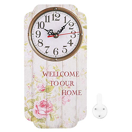 TAHEAT 34 cm Coloré Fleurs Horloge Murale, en Bois Rustique Horloges, Décoratif Exact Facile à Lire Pendules murales pour Le Salon/Chambre/Salle de Bains/Cuisine