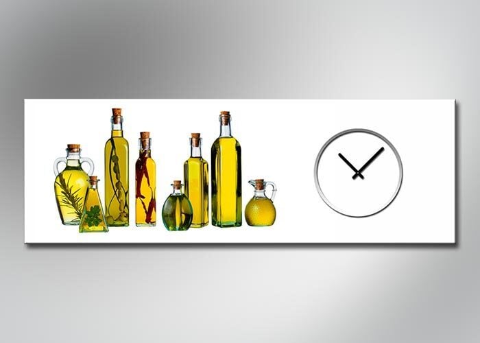 4175 Dixtime Horloge murale design, horloges murales, horloge de cuisine stylée,puriste, huile d'olive, bouteilles, blanc 35cm x 100cm