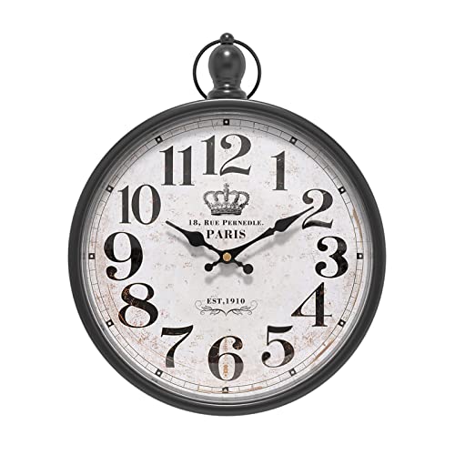 Menterry Horloge Murale rétro européenne Design Antique à l'ancienne, Style Rustique et Vintage. Horloges murales silencieuses fonctionnant à Piles pour la Cuisine, la Ferme, Le Bureau (Noir)