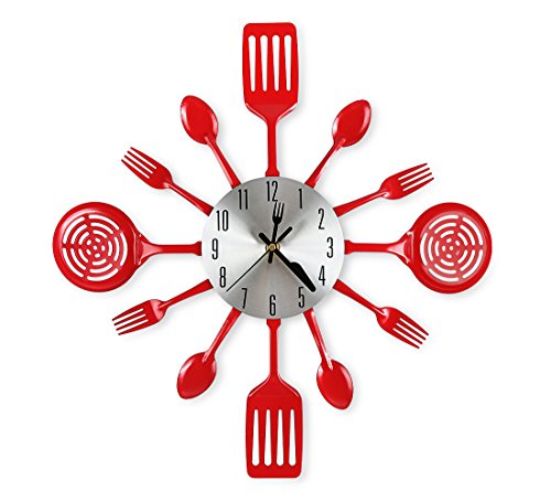 CIGERA Horloges murales de Cuisine de 40,6 cm avec Cadran Fourchette et cuillère, Mouvement d'horloge Silencieux et Fonctionnement à Piles, Excellente décoration Murale et Cadeau de Pendaison de