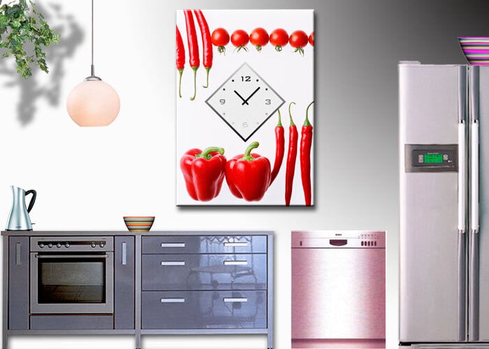 4182 Dixtime Horloge murale design, horloges murales, horloge de cuisine stylée, rouge blanc, poivron tomate pepperoni 70cm x 100cm