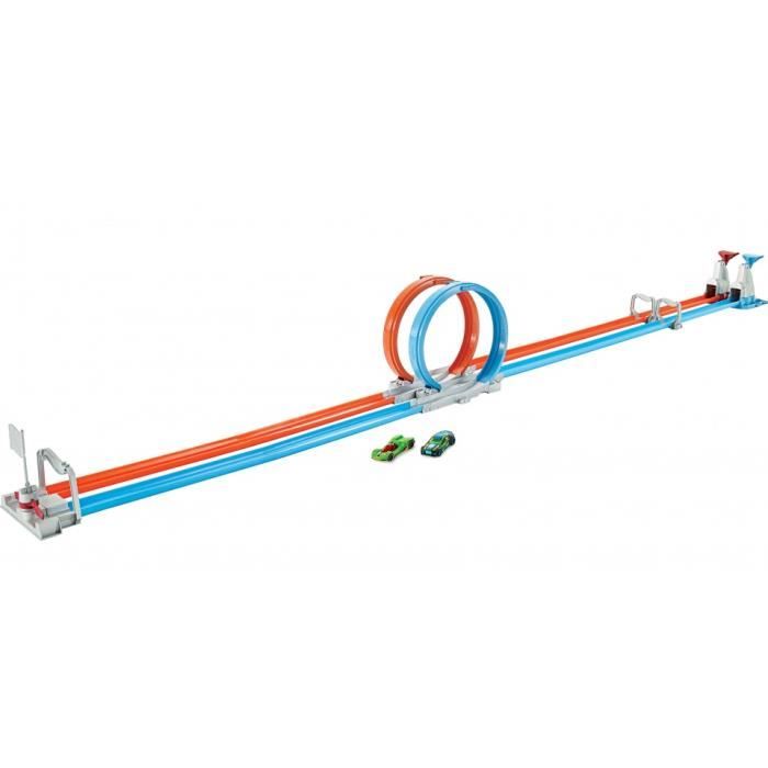 Piste Hot Wheels Action de lancement Double Loopings 213 cm orange/bleu - Jouet pour enfant de 4 ans et plus