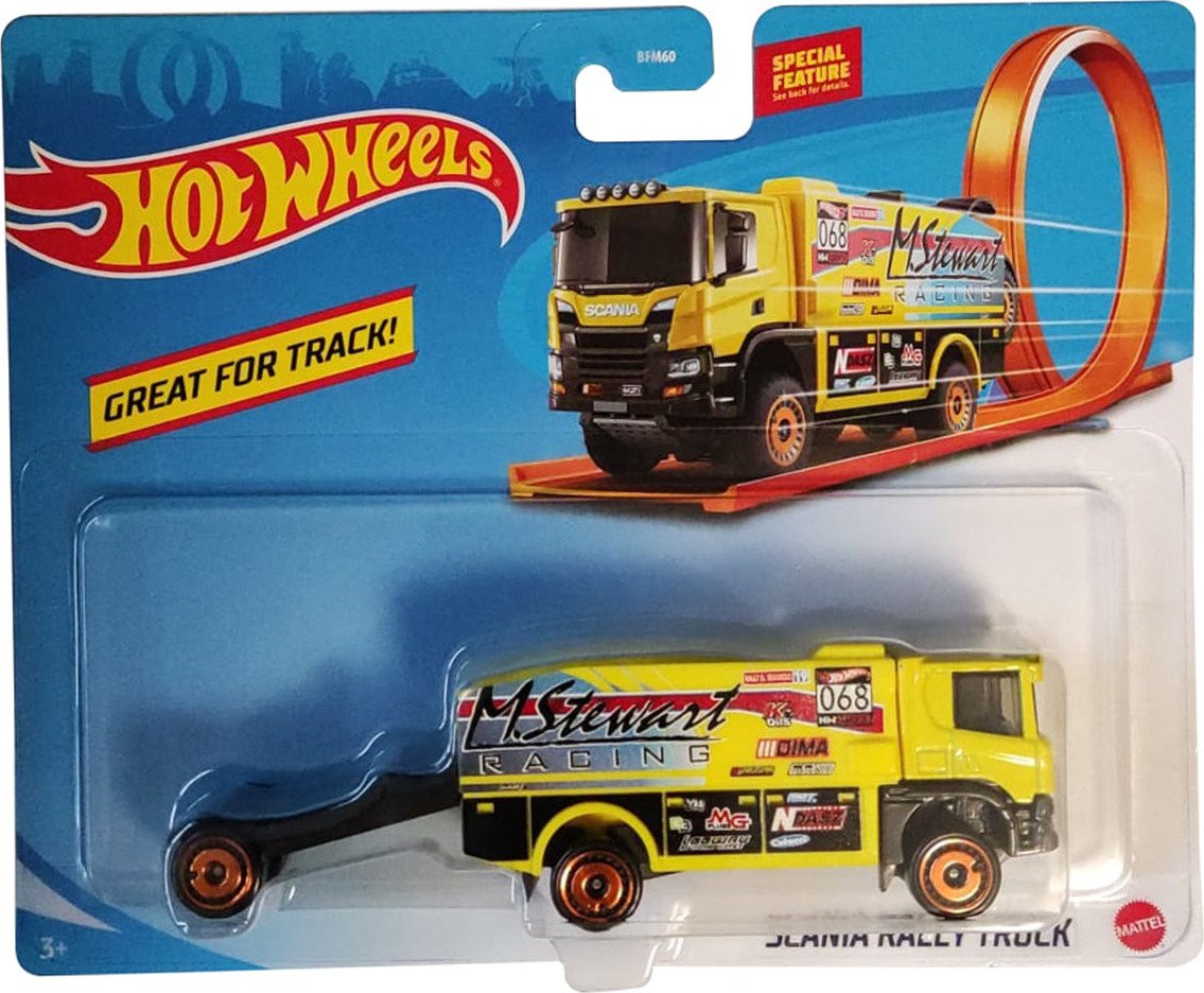 Camionnette Hot Wheels - Great for Track ! Scania Rally Truck, camion jaune, voiture jouet, édition collector, Mattel GKC33