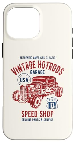 Voiture Classique Speed Shop Vintage Hotrod, Design Vieilli Coque pour iPhone 16 Pro Max