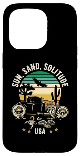 Design rétro, Soleil, Sable, Solitude USA Hotrod Coque pour iPhone 15 Pro