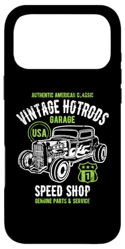 Voiture Classique Speed Shop Vintage Hotrod, Design Vieilli Coque pour iPhone 17 Pro