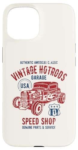 Voiture Classique Speed Shop Vintage Hotrod, Design Vieilli Coque pour iPhone 15 Pro