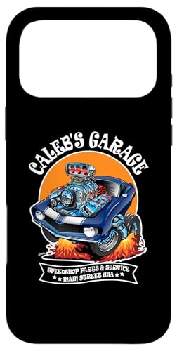 Caleb's Garage Hotrod Classic Car Design pour Le nom Caleb Coque pour iPhone 17 Pro