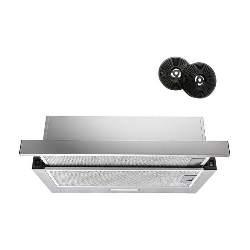 Hermitlux Hotte téléscopique 60cm, 360m³/h, recirculation/évacuation, 2 vitesses, éclairage LED, avec filtre à charbon