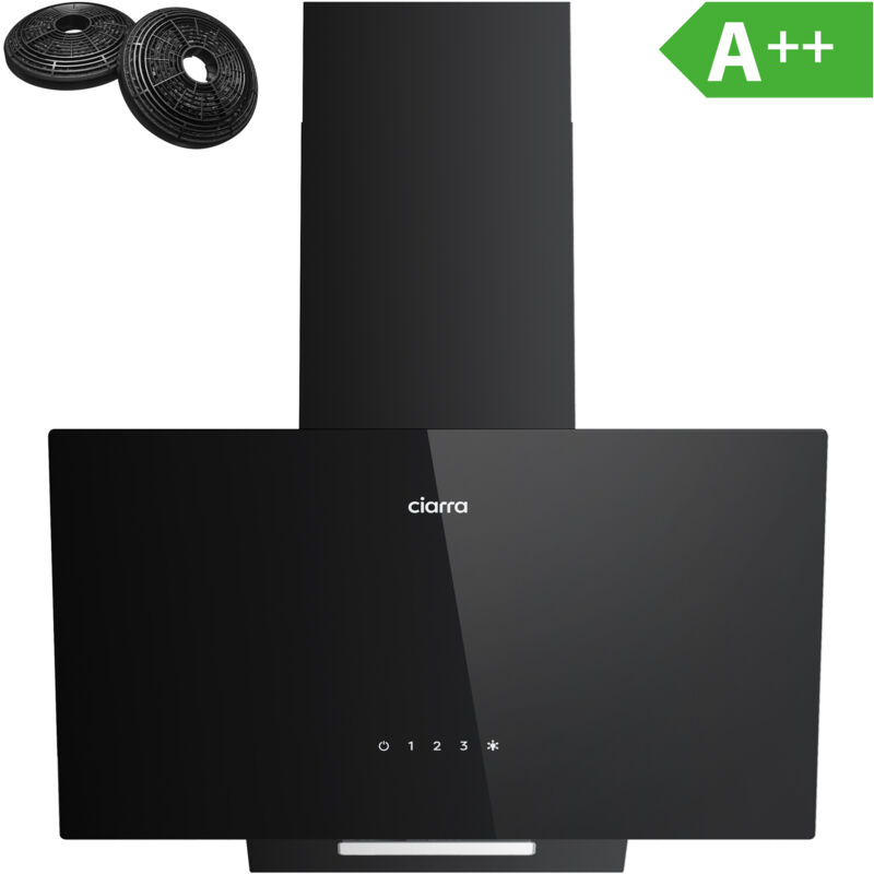 Ciarra Hotte murale Aspirante 60cm 370m3/h A++ 2pcs 3 Classe Vitesses Filtre Noir Actif Ou 201BK60 Evacuation Recyclage CBCB6201